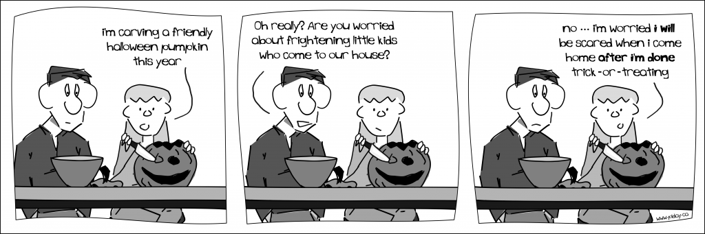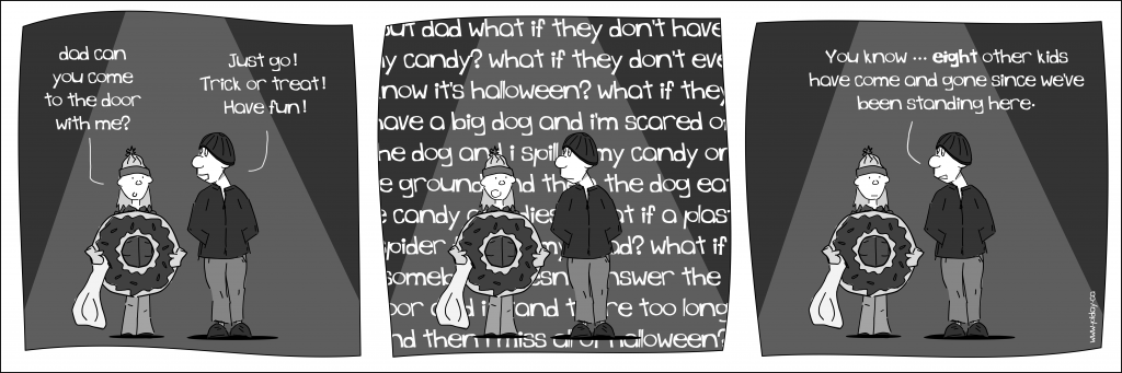 So much of what I drew fell into the category of “parenting” because at it’s core the strip was about being a dad. What you may not have noticed (or maybe you did) was two things. My wife was never in the strip (by design) and she was and still is fine (prefers) that. And two, the kid character always spoke in lower case. It made me happy the first time a reader pointed that out because, yeah, it was on purpose.